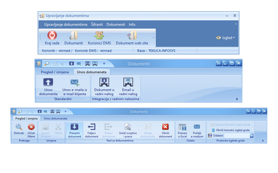 - Sve datoteke nalaze se na centralnoj lokaciji (serveru sistema za upravljanje dokumentima), pristup dokumentima moguć je samo kroz aplikativne module