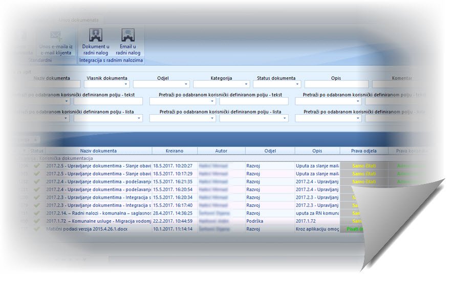 - Mogućnost podešavanja prava pristupa dokumentu na više nivoa (samo izlistati, čitati, mijenjati i adminstratorska prava) na nivou odjela